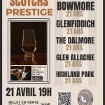 - ATELIER-DÉCOUVERTE / SCOTCHS PRESTIGEUne dégustation exceptionnelle pour le 21e anniversaire de Bedondaine & Bedons Ronds : cinq scotchs de 21 ans présentés par Jean-François Pilon (Whisky Montréal).